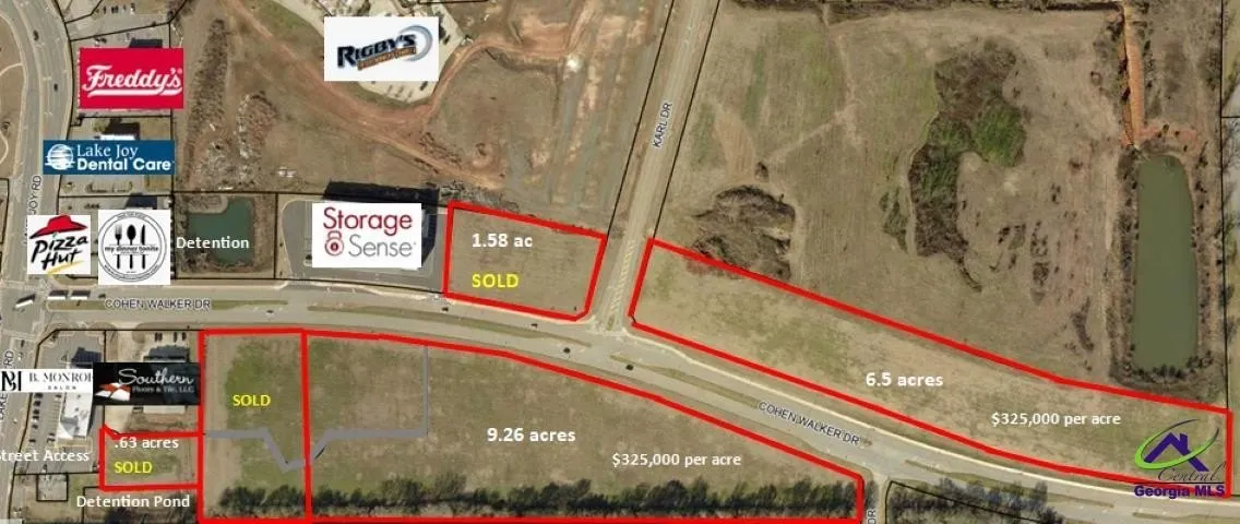 6.5 acre commercial land tract on Cohen Walker Drive. Can be subdivided as needed or sold as a whole. $325,000 per acre. City Utilities