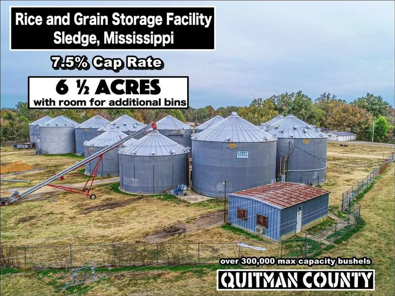 Located 25 miles east of the MS River in Sledge, this newly-updated facility is convenient for transport to the river on Hwy 315. The facility was extensively reworked with 2 drive-over systems with 10” grain pumps for a total of 5,600/bushels per hour. Recent Improvements: new wiring, electric panels, breakers, grain pumps, augers, floors, stands, underground electricity, & multiple new doors & fans. The bins have been 100% full this year and will hold over 300,000 bushels at max capacity. All bins are rented for the next two years with space for additional bins and income.