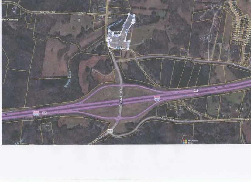 GREAT potential for many types of INTERSTATE ACCESS businesses, SUBJECT TO REZONING! 6.5 ACRE CORNER just off I- 840 Exit 47 - ALMAVILLE RD, between MURFREESBORO & FRANKLIN TENNESSEE!! Existing home & improvements all selling "AS-IS"! Apprx 151 front feet on TN STATE 102/Almaville Road & apprx 523 front feet on Old Shores Rd.