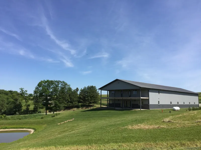 This one of a kind property is located just south of the Minnesota border in the beautiful NE Iowa bluff country. A very well constructed steel structure, 120 x 40 building, with 2,304 square feet of living quarters on one end and a large shop and garage on the other!