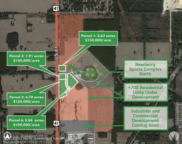Office, Retail or Special Purpose land available along US Highway 41 in growing Newberry, Florida. Existing City of Newberry MU Zoning allows for a variety of uses. Surrounded by over 700 new residential units and situated at the entrance to popular Newberry Sports Complex, these buildable lots range in size from 1.91 acres to 6.78 acres as presented, with a maximum contiguous size of 8.69 acres and a total of 16.18 acres available. Offsite stormwater retention and access to City of Newberry public water and wastewater provide additional value to these well positioned properties. Please see attached brochure for further details on available lots. *Property taxes are not accurate and subject to change* *This property is a portion of a larger parcel*.