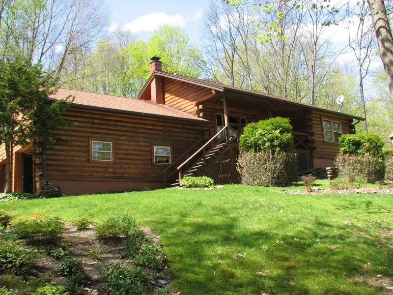 Nestled in the woods, this lovely, efficient log home offers your own nature preserve. Woodland plants, perennials and white cedar trees abound. This home features a large 2 car garage, front porch, 2 BRs, 2 Baths, pine floors, bay window, mostly finished basement. Convenient location and ready to move in.