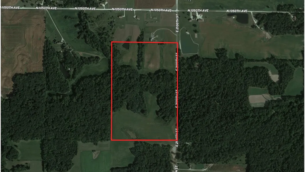 On top of that, there is a creek cutting through the center of the property and ponds on the north and south ends of the farm. No zoning.