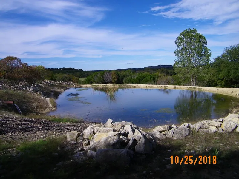 Giant Pecan and Bur Oak trees line the creek and the seasonal stream that comes out of the wooded hill on this magnificent place! There is an impeccable view of the creek valley ready for a home, a spring-fed hilltop pond, and a waterfall/crawfish hole to enjoy! Sandhill Crane watching, pond-side dove hunting, awesome white-tailed deer hunting, flint filled Indian campgrounds, a hand-stacked rock fence along the old wagon road are just a few of the attributes on this jewel of a place.
