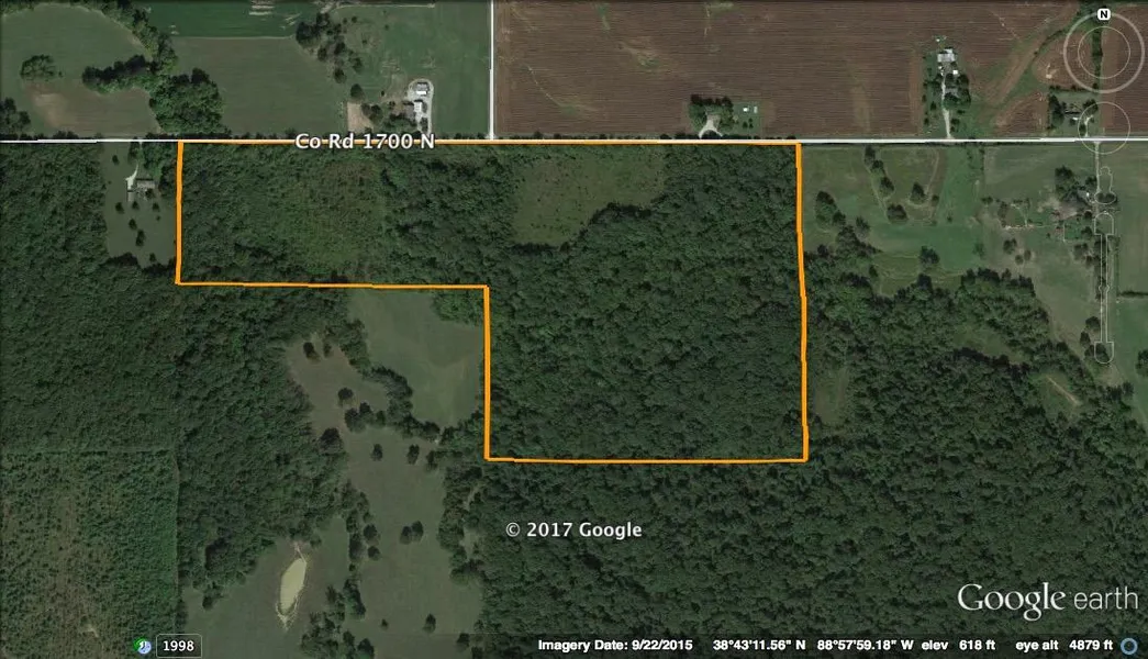 60 +/- acre hunting land for sale in Marion County, Illinois. The property has 1/2 mile of black top road frontage on the north side of the property that provides great access at any point, on almost any wind direction. There is a 5 +/- acre field in the middle of the property that is has 10'-15' tall cedars and oak trees scattered throughout tall warm season grasses. The area would be perfect for 2-3 food plots. The road frontage could be left thick so no one would even know the food is there except for you and the deer.
