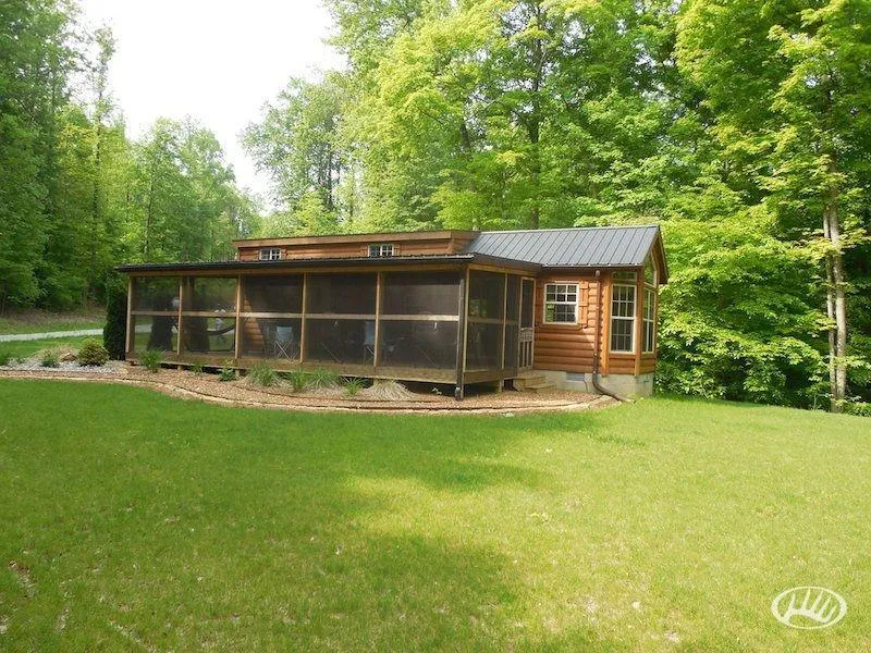 - Turn key property with secluded modular cedar cabin, bedroom, loft, bathroom, kitchen, living room