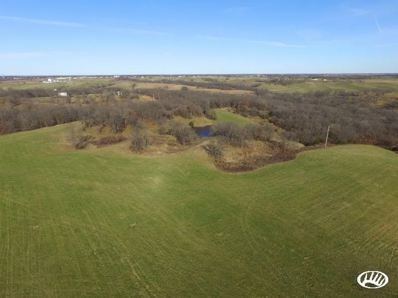 - Land transitions from ridge top fields and timbered ridges down into a creek bottom on the Eastern side of the property