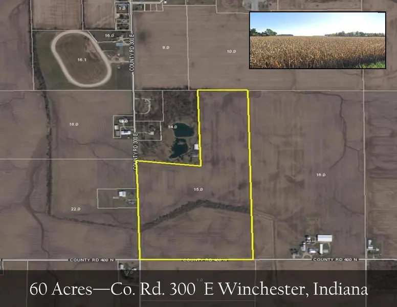 FOR SALE 60 Acres Indiana Situated just south of Saratoga in the heart of Ward Township, Randolph County, Indiana, this prime 60.558-acre parcel of bare land offers a rare opportunity for both seasoned farmers and land investors. With an impressive 2,800 feet of combined road frontage along County Road 300 E and County Road 400 N, the property ensures outstanding access for equipment, transportation, and potential development. A natural open ditch runs through the farm, providing ideal conditions for field tiling and enhanced water managementmaking this land not only productive but also highly workable. The farm is located in Section 36 of Ward Township and boasts strong, fertile soils that are highly suitable for a variety of crops. Soil composition is approximately 56% Pewamo (Pw) with 01% slopes, 39% Glynwood (GnB2) with 14% slopes, and 5% Blount (BgmA) with 02% slopes, offering an excellent balance of drainage and nutrient-holding capacity. These attributes contribute to long-term soil health and sustainable yields. Positioned in a desirable rural farming community, this parcel combines practical utility with long-term investment appeal. Whether you are expanding an existing operation or seeking a solid agricultural holding, this property is ready to meet your goals. ** Please note: the sale is contingent upon the seller purchasing this tract as part of a larger land acquisition, and this closing must occur after November 1, 2025.** Dont miss your chance to secure a high-quality farm property in a strong Indiana location with proven agricultural value and future upside.