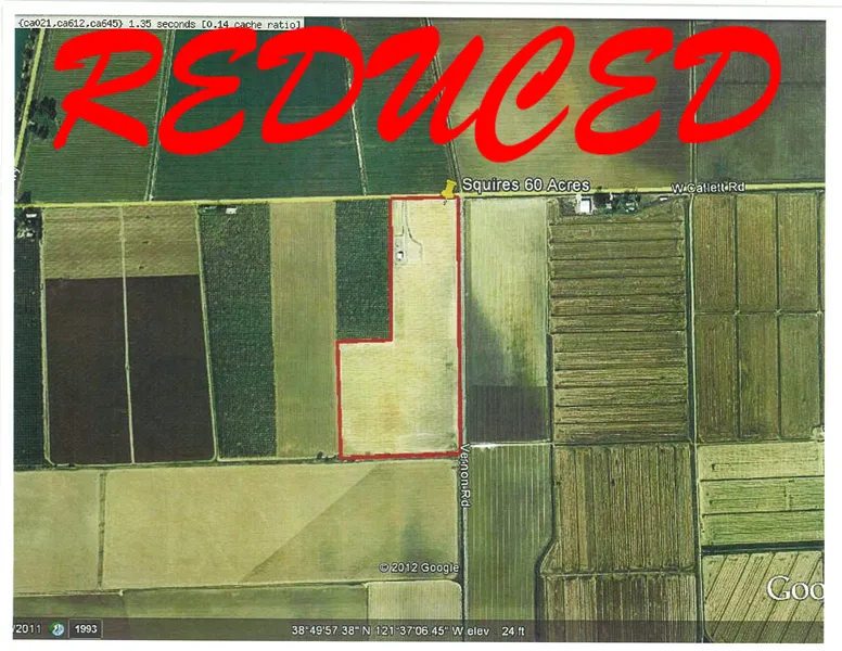 Research Parcel InformationThis 60-acre property is four miles west on West Catlett Road off Highway 99 heading towards the Sacramento River. The property is located on the corner of West Catlett and Vernon Roads in Nicolaus, California. The property is 20 minutes from Natomas and 30 minutes from Yuba City.