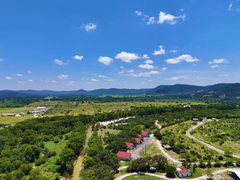 Improvements: With 26 cabins, a 2,900 sq ft owners home with a 500 sq ft balcony, a 3 bed 2 bath managers home, 2 single wide mobile homes, a work shop with an efficiency apartment, and a laundry supply room spread around the property, there is ample space for rentals along the Frio River or lodging if you were to develop the property into a potential wedding/event venue. The cabins are thoughtfully spread across the property to ensure a balance of seclusion and community, ideal for vacation rentals, retreats, family getaways, wedding venues, outdoor concerts and events. Each cabin comes with spacious living areas, kitchens, and outdoor patios to fully immerse guests in the beautiful Hill Country landscape. In addition to the cabins, the property offers ample space for future development, including potential for additional accommodations and recreational facilities.