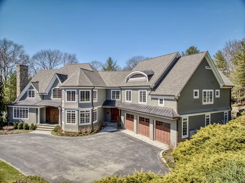 Presenting 1.36 acres of privacy in West Newton Hill. Up a long driveway sits this beautiful shingled style colonial with over eleven thousand square feet of living space. Enter into a dramatic two story foyer to appreciate the beautiful dual staircase and detailed millwork throughout including a mahogany office, soaring two story stone fireplace and walls of glass overlooking the southwest facing park like grounds. First floor bedroom suite with kitchen & laundry is ideal for guests or easy one floor living. Generous sized rooms throughout with a great flow both indoor and outdoor is ideal for entertaining. Second floor features five large bedroom suites, office and laundry room. Third floor has a bedroom suite with sitting, office or play space. The magnificent lower level is ready for you with a large gym, stadium seat theater, play space and wine room. This location gives you the best of privacy and quick access to shops, restaurants and the MA Pike. Very special property!