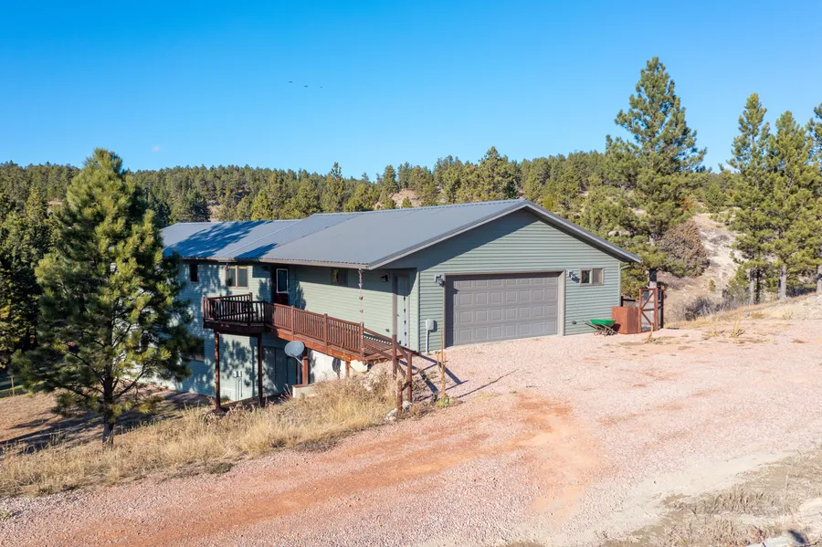 Great home in the Black Hills pines on 35+ acres. Solidly built in 2013 with a steel roof and steel siding to protect against hail and wired with a switch for a backup generator if power goes out. Lots of quality custom wood and glass work by the original owner with laminate wood flooring and tile throughout. Two bedrooms and one bathroom upstairs and two bedrooms and one bathroom downstairs with large living areas on both levels. A large room underneath the garage has been used as a man cave but can easily upgraded to a game room, theatre, living room, etc. A new 450, 5 GPM well is in place along with a brand-new owned water filtration system, commercial reverse osmosis system and large cistern. The well pump and pressure pump are both new. All appliances stay with the home including refrigerator, Gas range, oven, dishwasher, washer, dryer, dehumidifier and the water systems. Property is visited by much wildlife including deer and wild turkey and elk and antelope arent far away. Powder River Electric service, 1000 gallon leased propane tank, high speed fiber internet service and garbage service are all in-place or available. Mostly absentee owners since built, so it feels almost like a brand-new home! Priced at $675,000