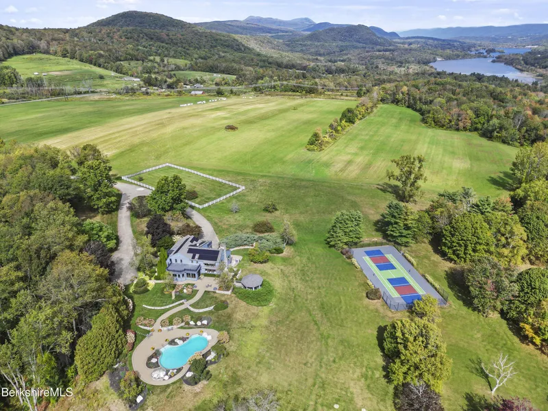 ABSOLUTELY BREATHTAKING 360 degree VIEWS IN EVERY. DIRECTION. Rarely does a property come along with so much to offer. A well built home offering so much. Pickle Ball, Tennis, Swimming, Lake frontage, lush green lawn and pastures. Views from every room in this lovely home. Kitchen has Sub-Zero refrigerator, Wolf cooktop, large center island and a wall of windows overlook the gorgeous gardens and view. Formal dining room with Maureen White-Kirkby 413-446-5634 BERKSHIRE HATHAWAY HOMESERVICES BARNBROOK REALTY