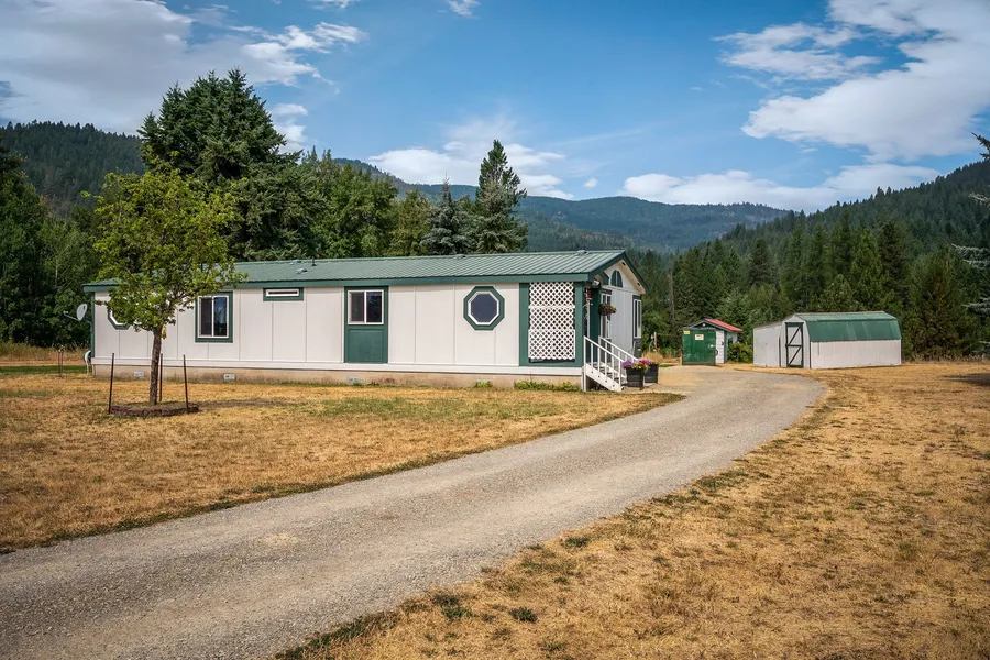 Excellent condition. Single level home has had loving care! Clean,neat and ready for you! Large rooms throughout. Large open floor plan. Spacious living room flows to the dining room. Dining area and kitchen are convenient layout for maxium use. The kitchen has lots of beautiful cabinets for storage. Propane range,all appliances included. Large view windows not only allow lots of natural light but also captures the view of the surrounding mountains. Laminate flooring in kitchen and dining. Master bedroom/bath is large. Guest bathroom has door to second bedroom allowing for 2 master bedrooms. Central heat/air. Attached carport. Home and car port have full metal roof. Conveniently located 10 minutes to Priest River,15 minutes to Sandpoint. Ziply Fibre, Laclede Water District. H andicap ramp will be removed prior to closing.