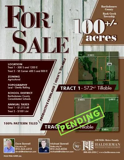 High Percent Tillable, Pattern Tiled, Productive Farmland in Bartholomew County, IN