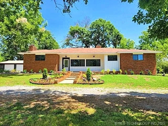 Mid-Century Modern Designer Home in Town on 2.6 Acres – Park-Like Setting! Welcome to your private retreat in town! This stunning 4-bedroom, 3-bath home offers over 2,700 sq ft (CH) of luxurious living space, nestled on 2.6 beautifully manicured acres. The fully fenced property features a gated entrance, circular drive, 2-bay attached carport, and a 30x40 insulated shop with an 80-gallon water tank—perfect for projects or storage. A storm shelter adds peace of mind. Step inside to discover designer touches throughout! The heart of the home is a chef-inspired kitchen complete with gleaming Quartz countertops, custom cabinetry, a striking metal vent hood, stainless farm-style sink with dual faucets, coffee station, and TWO large pantries. The oversized laundry/mudroom features built-in organization and storage to keep everything in its place. The opulent primary suite is a true retreat, boasting a soaking tub, elegant tiled shower, towel warmers, and stylish finishes that create a spa-like atmosphere. With new thermal windows and new HVAC with all new ducts, every inch of this home has been thoughtfully designed for comfort, function, and beauty. Whether you're relaxing under the mature trees, hosting guests, or simply enjoying the quiet park-like setting, this in-town estate offers it all—luxury, space, and convenience. Don't miss your chance to own this rare gem!