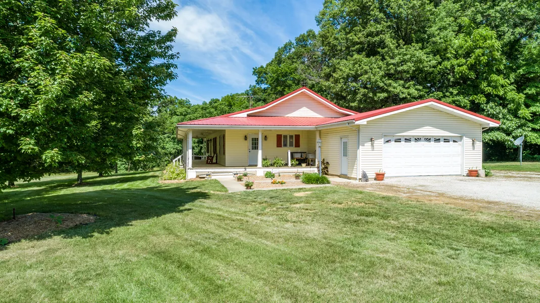 FABULOUS COUNTRY HOME with almost 34 rolling acres of pastures and timber. This 3 bedroom, 2 bathroom country retreat is only 18 years old and features a 60' x 42' pole barn. Large, wrap around porch with ceiling fans overlooks the pond and shade trees in the front yard. Spacious kitchen boasts top of the line appliances and a breakfast nook. Huge 17' x 13'- dining room is open to the 25' x 13' living room and has gorgeous refinished hardwood floors, plus views out to the pond and pasture. Large master suite with master bath, plus two additional bedrooms, an additional full bathroom, and main floor laundry. Nicely re-stained, wide trim graces the entire home. 1800 sq foot, dry basement has 8 foot ceilings and poured concrete walls, perfect for storage or finishing potential. Attached garage has a workshop and an additional basement entry. Home has a 10 year old, metal roof. Come hang your hat here!