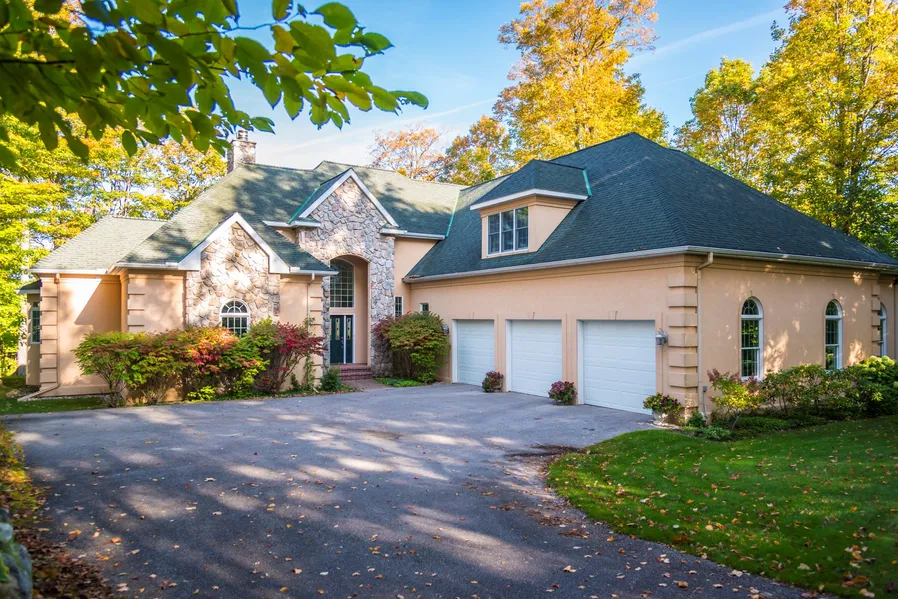 Enjoy everything that Northern Michigan has to offer from this serene and elegant home tucked in the hills just 3 miles east of Petoskey. Centered on a large wooded lot, this home offers feelings of privacy, but still a connection to the local communities through a window in the trees overlooking Little Traverse Bay and Harbor Springs. You'll be able to enjoy all of Michigan's seasons here with an expansive backyard deck for summer barbecues, a reading nook with wrap-around windows to watch the changing fall foliage, and a sauna to warm up after a day the area's various winter sports amenities. Numerous luxury features such as whole house sound system connected via Alexa, vaulted ceiling and fireplace in the great room, hardwood floors, gym, and a large six car garage. The home also features several spaces that can be tailored to your preferred hobby, special-purpose, or recreation.
