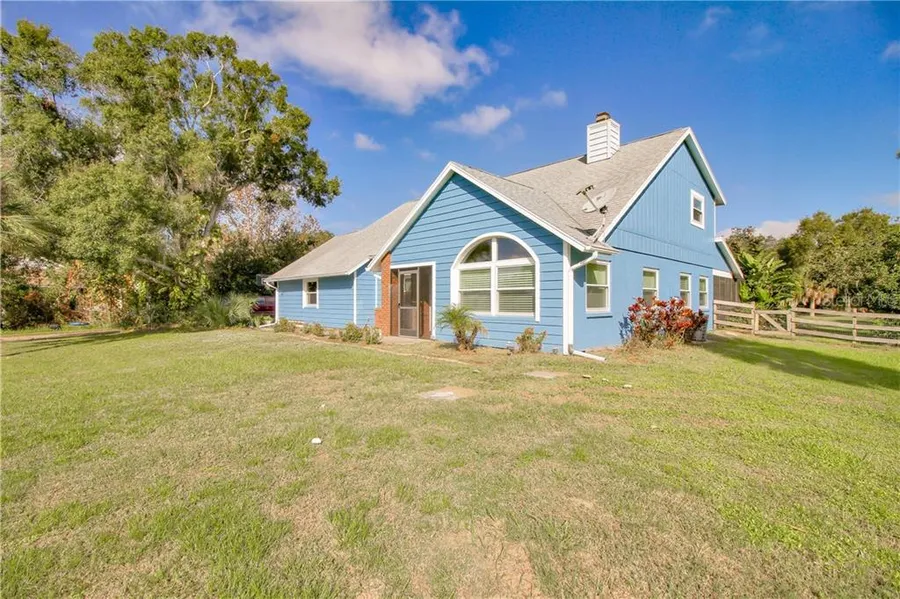 You will fall in love with this warm and inviting home. A very special find on over an acre of land with lots of room to roam. You'll have plenty of space for your family to enjoy time together. A dual sided fireplace sits at the heart of the first level, warming both the large living and family rooms. The family room has built-in shelving and cabinetry with lots of storage for your books, games and decor. In the kitchen, you will find lovely granite countertops and wood cabinetry, as well as all stainless steel appliances. A full sized eat-in area is a bonus to the dining room, as well as an extended breakfast bar.French doors flank the rear of the home and provide a view of the lovely, covered, screened in porch, with ample space for dining and entertaining. Beyond, is a large, inviting pool, and lots of land to park your RV or boat, and even a horse! No HOA's or deed restrictions here. The additional, detached, 2 1/2 car garage is split into two separate entrance areas - the front is a large heated and air conditioned game room with pool table, while the backside is a workshop. Current owners have continuously upgraded this home with the utmost care and love. The extensive list is attached. 6 minutes to the beach and the Legacy Trail is at the end of the block. Get that peaceful, country feel within striking distance to town. You will not be disappointed!