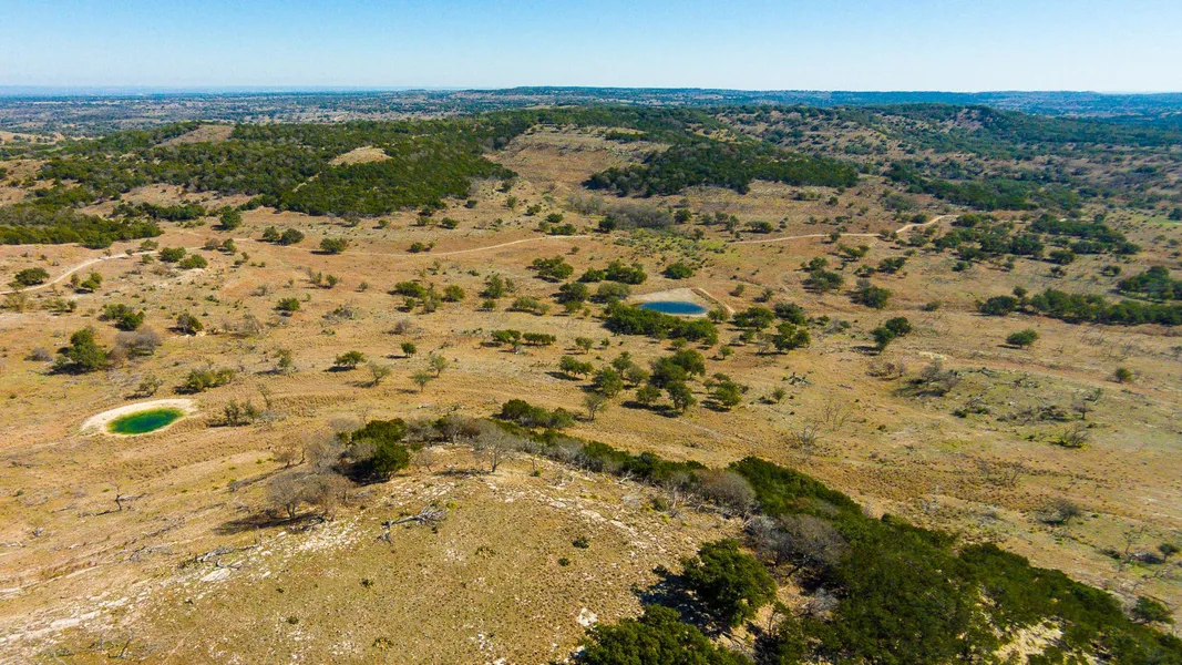 Land - This ranch offers tremendous views with elevations ranging from 1,440' to 1,784'. There are multiple dominant hilltops that offer potential home sites. Over the years, most of the cedar has been removed with Spanish oak & live oak dominating the hills and post oaks & elms in the bottoms. There are granite outcroppings in the lower portion of the ranch. Ranch is fronted by 5,663 +/- feet of blacktop FM 1323. There are no easements through the property. The ranch is 3 sides perimeter fenced.