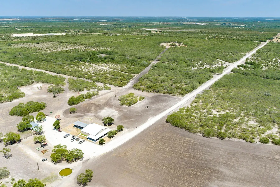Everything needed to maintain a successful hunting operation is included in this sale. Upon entering the 888 Ranch, a raised and well-built 3,200 ft. caliche road leads to the heart of the ranch with a 3,600+/- sq. ft. 6 bedroom/6 bath barndominium-style lodge with large entertaining porches, a mudroom, BBQ space and extensive parking area. Other improvements include a Case 170 4WD Puma tractor, Terex 760 backhoe, Massey Ferguson 70hp 4WD tractor, 22ft Amco disk, skinning rack, walk-in cooler, 1000-yard shooting range, set of cattle pens and a 40-ton feed silo just to name a few.