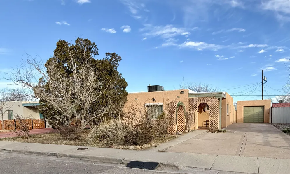 This home is full of Southwestern charm! It offers three bedrooms and one bath, along with an inviting eat-in kitchen featuring custom cabinets. The large back patio is perfect for family gatherings, relaxing evenings, or entertaining friends. The detached garage adds extra convenience and storage, and the owned solar panels are a great bonus for energy efficiency. A welcoming home with great character—ready to be enjoyed!