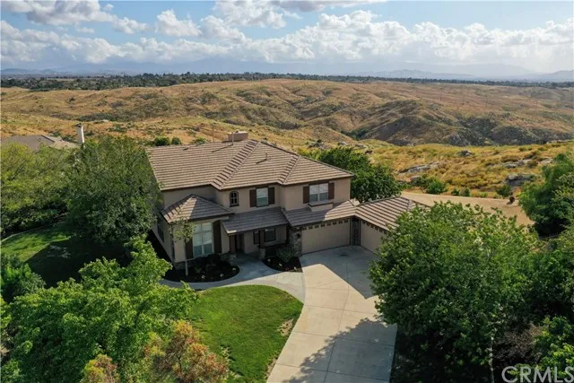 This exquisite semi-custom home is impressive inside and out. Stunning hardwood floors greet you upon entry with a large open living room with custom shutters, as this open includes the dining room which lends to easy entertaining. There is a private study with custom color accents, built-in book cases and French doors for extra privacy. The family room has a flagstone fireplace and hearth with custom built-in accents, surround sound, and stunning windows that overlook the pool and patio. Entertaining made easy as the gourmet kitchen opens to the family room and features a large nook area. The kitchen has granite counters, breakfast bar, separate center island, an abundance of custom cabinets, stainless steel appliances and a butler's pantry. There is a full guest bedroom with its own bathroom downstairs along with separate laundry room with upper cabinets. The upstairs has a double door entry to the huge master suite with stunning views. The master bath has two granite surfaced vanities, custom mirrors, and a separate makeup vanity, as well as a separate tub and shower. Secondary bedrooms are good size with plenty of closet space. The backyard has a separate conversation space that includes a fire pit. There is a covered patio with unobstructed mountain and city light views, a built-in BBQ with bar overlooking a sparkling pool and spa. Additional features include gated RV Parking, shaded dog run, fully fenced grounds with citrus trees, this home is beautifully appointed.