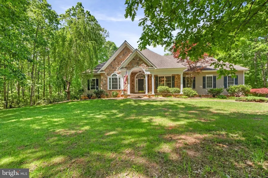 Welcome to this charming and spacious rambler, nestled on a beautiful 3.8-acre lot offering the perfect blend of privacy and nature. This well-maintained home features a full basement and a three-car garage with built-in storage, workspaces, and access to the backyard ideal for hobbyists or extra storage needs. Inside, you ll find hardwood flooring throughout much of the main level including the dining room family room as well as a welcoming foyer with wall speakers that convey, and an elegant formal dining room with chair rail, crown molding, and shadow box details. The spacious kitchen is a chef s delight, with a walk-in pantry, lots of cabinet space, dual sinks with disposer (including one on the island), tile backsplash, laminate counters, a gas cooktop, wall oven, microwave, and side-by-side refrigerator with water and ice dispenser. A sunny breakfast room with a bay window offers a cozy spot to enjoy your morning coffee. The family room is perfect for gathering, featuring a wood-burning fireplace with raised tile hearth, mantel, tray ceiling, crown molding, hardwood floors, ceiling fan, and recessed lighting. The primary suite is generously sized with tray ceiling, crown molding, two walk-in closets, recessed lighting, and a ceiling fan. The ensuite bath offers dual vanities, a whirlpool tub, and a walk-in shower with granite bench. The second bedroom on the main level includes a vaulted ceiling and ceiling fan. The third bedroom has a ceiling fan. The hallway has plush carpeting, a large linen closet, and a well-appointed hall bath with shower/tub combo, makeup desk, and laminate flooring. The large basement includes a wet bar, bar refrigerator and recreational area. Please note the pool table and light fixture is negotiable. Two legal bedrooms on the lower level with carpet. Perfect for guests! The basement also has a full bath with walk-in shower and comfort-height vanity, as well as an expansive unfinished area perfect for storage, a gym, or future customization. Outside, enjoy the serenity of mature trees, flowering bushes, fruit trees which include plum, cherry and apple, brick patio with swing that conveys, and Trex decking. Perfect for entertaining. This home is wired for a generator (BYOG), has a propane-powered HVAC system and water heater, and includes an owned propane tank. Additional features include a garden shed, leaf vacuum, two wood chippers, electric pet fence with two collars, and the option to negotiate a riding mower. With well water and AmeriGas service in place, this property combines comfort, functionality, and country charm. Don t miss your chance to own this private retreat!