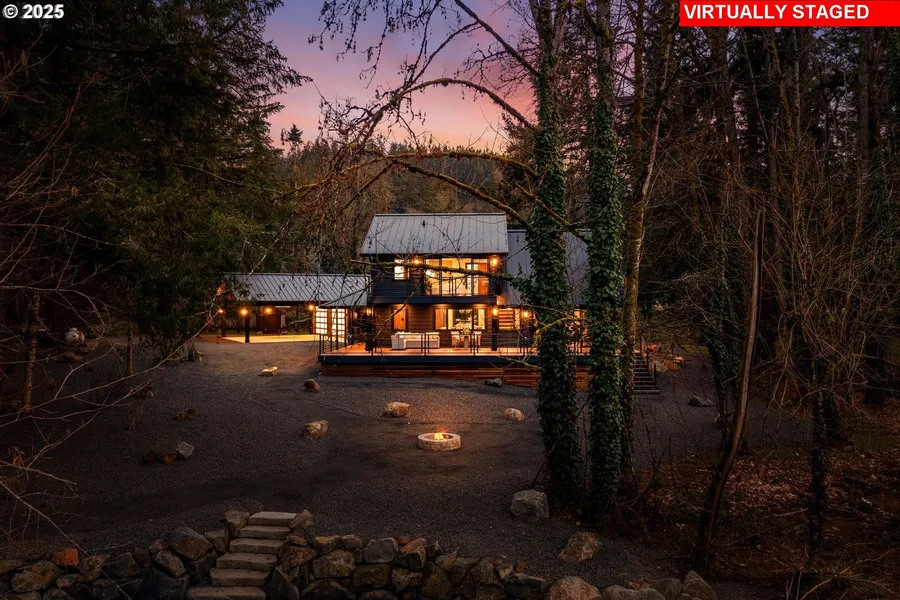 Experience this stunning property with easy access to the Abiqua creek, custom features throughout. Custom shower with sauna and heated floors. Kitchen over looks the creek with instant hot water for conveniences. Upper leaves has large over size room for extra quest with their own wet bar and deck for privacy. Covered deck for year round enjoyment. This would make the perfect Air B&B close to down town Silverton and the Oregon Gardens.