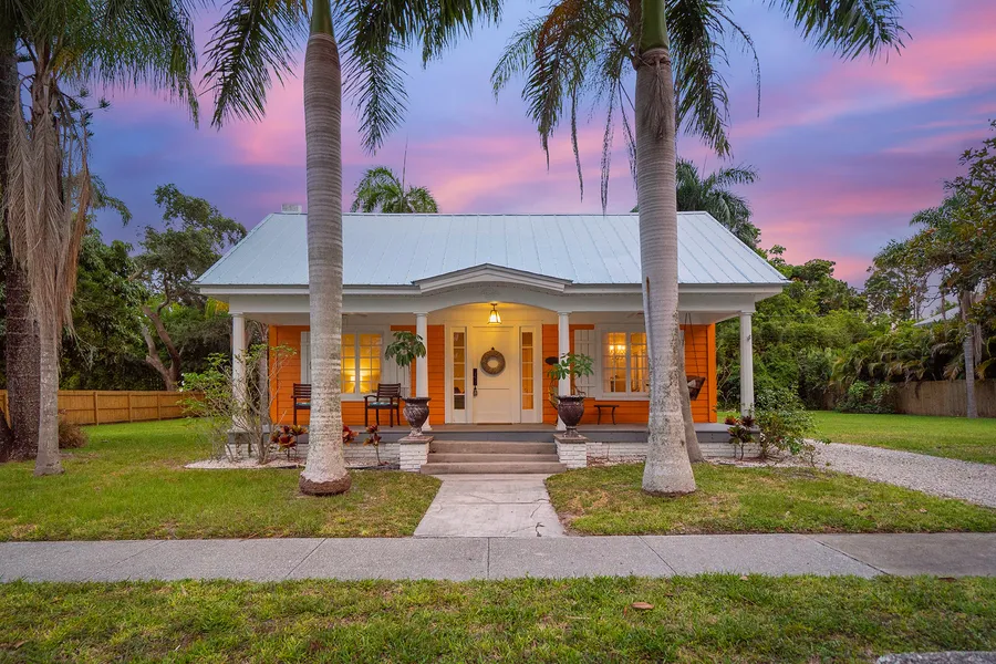 With almost a century of northwest Bradenton's history captured in the walls of this craftsman bungalow, the heart of the home just might be the front rocking porch where you can enjoy the warm Gulf breezes or stroll to the end of the street and watch the glorious nightly sunsets over Palma Sola Bay. "Mango Cottage" is named for its tropical color and an ode to the granddaddy mango tree providing mangos and shade in the backyard. You will not be disappointed to find the characteristics and details that old-house lovers seek, solid hardwood floors with the patina that you can only get with 100 years of life. The updates were smartly done to keep the character of days gone by and provide the amenities we have come to expect, an open kitchen, granite countertops, updated bath fixtures and kitchen fixtures. The home is currently a vacation rental, and its coastal design furnishings are included and is turnkey. The adjacent building lot is also available.