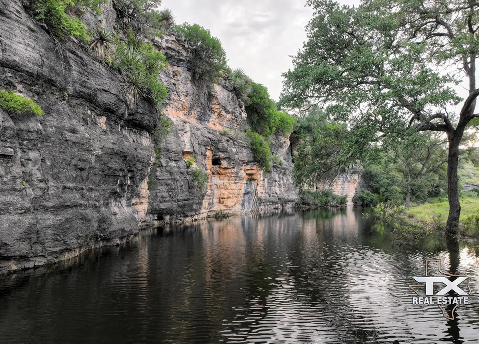 Water is one of the most defining and desirable features of Smith Ranch Big Bluff Pasture, setting it apart as a rare and dynamic property in the Texas Hill Country. At its heart lies Yancey Creek and other seasonal streams that meander through the property, creating deep pools that can hold water year-round. These waterways not only enhance the property's natural beauty but also support abundant wildlife. The ranch includes three well-constructed ponds, each over one acre in size and lined with clay material to ensure reliable water retention. Completing the robust water infrastructure is one strategically placed well, providing a dependable water supply.
