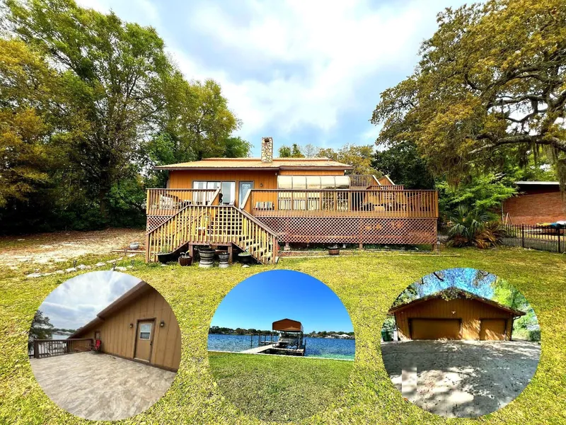 Waterfront Paradise on Cinco Bayou! This one-owner custom home offers 106 feet of direct waterfront and a spacious .32-acre lot with stunning views, daily dolphin sightings, and a private dock with boat lift (new in 2021 - Boat cover new in 2024!). Featuring 3 bedrooms, 3 baths, a 3-car garage, and a durable metal roof (2008), this home blends comfort, character, and coastal living. Inside, the gourmet kitchen is a chef's dream with Corian countertops, an oversized island with JennAir downdraft range, and custom wood cabinetry with pull-outs and deep drawers. The breakfast nook is bathed in natural light and overlooks the bayou. The Great Room stuns with soaring wood-paneled ceilings and walls, anchored by a stone fireplace-perfect for relaxing or entertaining. The spacious Master suite is located on the first floor and includes a 7'x12' walk-in closet. The adjoining guest bath features a double vanity and shower, with access to a screened 15'x10' porch with hot tub! Upstairs, you'll find a large open landing, two guest bedrooms, a full bath with double sinks, and access to the upper deck with panoramic water views. Additional features include: Cedar siding and elevated, off-grade construction (home has never flooded); Bryan Pest Control termite bond; Two laundry areas (stackable unit in kitchen & full-size hookups + utility sink in garage); All-electric; Ample storage throughout! Call to see this Beautiful Home Today!