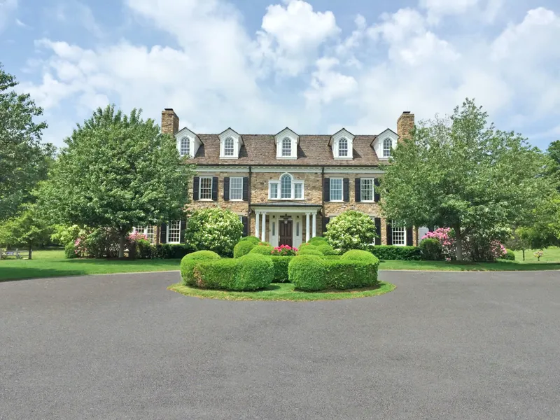 This Georgian-style estate is a tranquil retreat, set graciously on a private four+ acres in prestigious Hartley Farms, a carefully planned community offering architecturally significant new homes surrounded by meticulously preserved natural meadows and forests including 42 acres of playing fields and walking trails. This bespoke home was constructed to exacting standards with the classic charm of a cedar wood roof, stone and white clapboard siding and quality Marvin windows. Equally impressive, the interior boasts striking millwork, five fireplaces, a grand entry foyer, elegant formal spaces, sunroom, office, gourmet kitchen and stunning two-story family room. A fireside master suite, four other expansive second floor bedrooms and lower level with gym, sauna, steam shower and wine cellar will not disappoint.