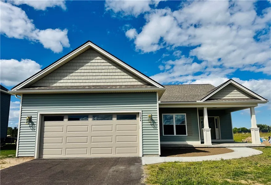 Introducing, in Hathaways Corner, 6084 Eddy Gate Way! A beautiful ranch new build including 3 bedrooms, 2 full bathrooms, a gas fireplace, cathedral ceilings in the living room, that is open to the kitchen and sunroom. Our design team hand pick selections throughout the home so you can move right in. You will love the soft close cabinets, with dovetail construction in the kitchen, the two closets in the primary bedroom and on suite bath. This house has tons of storage on the first floor and even more in basement and 2 car attached garage. Relax on the fully covered front and back porch. Other features include: an air ventilation system, central air, 200 AMP electrical panel, an egress window and a radon mitigation prep kit. 3 miles from the 90, close to shops, restaurants and the Finger Lakes Gaming and Race Track. This home is under construction and will be finished in 60-90 days. NO HOA and Taxes TBD.