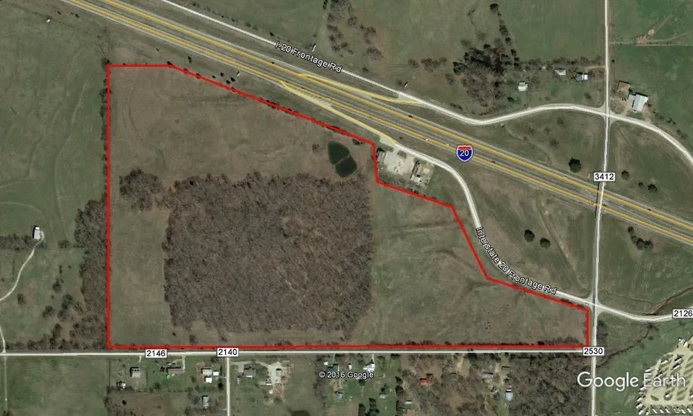 CORNER PROPERTY ON AN I-20 EXIT WITH A TXDOT APPROVED ENTRANCE AND CULVERT ALREADY IN PLACE. Located just 3 miles west of Canton and 20 miles east of Terrell this 61 acres has potential for industrial use or an RV park. This property has over 2600 ft of frontage on I-20 and the frontage road that services the land. There is an additional 2900 ft on CR 3412 and CR 2530 on the side and back end of the property. Approximately 16 acres are wooded with a .5 acre tank on the north side of the property.