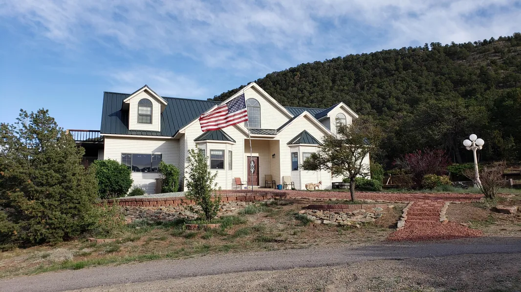 Stunning Panoramic Mountain views, fenced 3 acres with private backyard landscaped patio & additional acreage, feels like you own your own mountain with access to hiking & riding trails. Minutes to dining & shopping close to ABQ. Incredible open floor plan, includes a beautiful master suite, three other large bedrooms, & office. Wonderful marble windowsills. Freshly painted rooms &updated lifetime flooring (redwood/waterproof} Toilets & sink fixtures replaced in 2021. Cost saving LED lighting. Easy cleaning Harmon Pellet stove sized to heat the home. Modern water system includes a well & rainwater harvest (7100 gallon) making this East MTN home drought resistant. Spacious 4 stall horse barn, 3 car garage, fruit trees & shed.