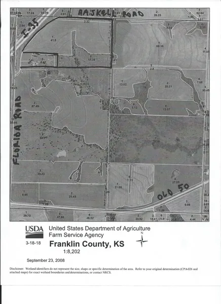 A nice tract, currently tillable land, is in brome for hay. Could easily be broke out and farmed. All brush has been cleared or clipped. A good, clean tract of land. Has I-35 frontage.