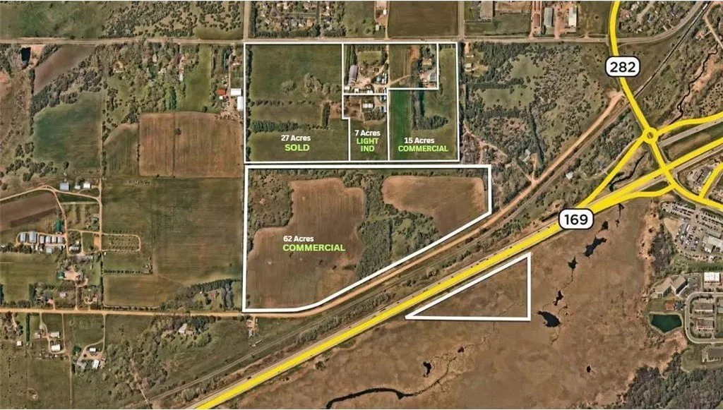 22 -/+ acres Guided for Highway Commercial & Light Industrial. Just off Hwy 169. Sewer and water