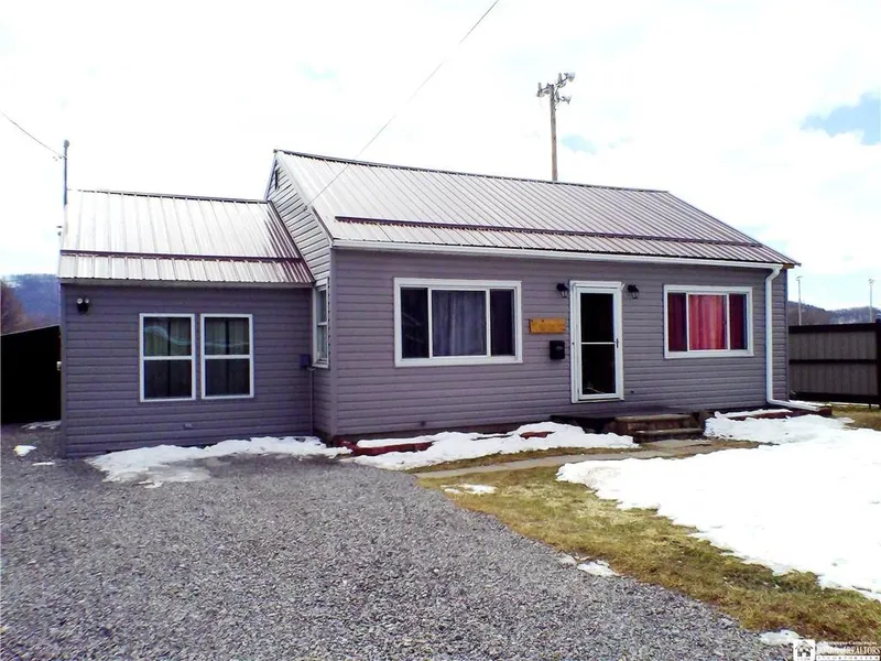 Beautifully maintained and updated ranch home on a great lot on a quiet dead end street. Tons of natural light enhances all of the great qualities of this home. Open eat in kitchen with access a great enclosed back porch leading to a fully fenced in large level back yard. Large shed with 2 levels of storage. The master bedroom features a vaulted knotty pine ceiling with natural wood beams and wood stove to keep you extra warm on cold nights. Large 2nd bedroom. Brand new bathroom with walk in shower and laundry. New metal roof. With spectacular views of the western ny landscape this is a truly a place to call home.