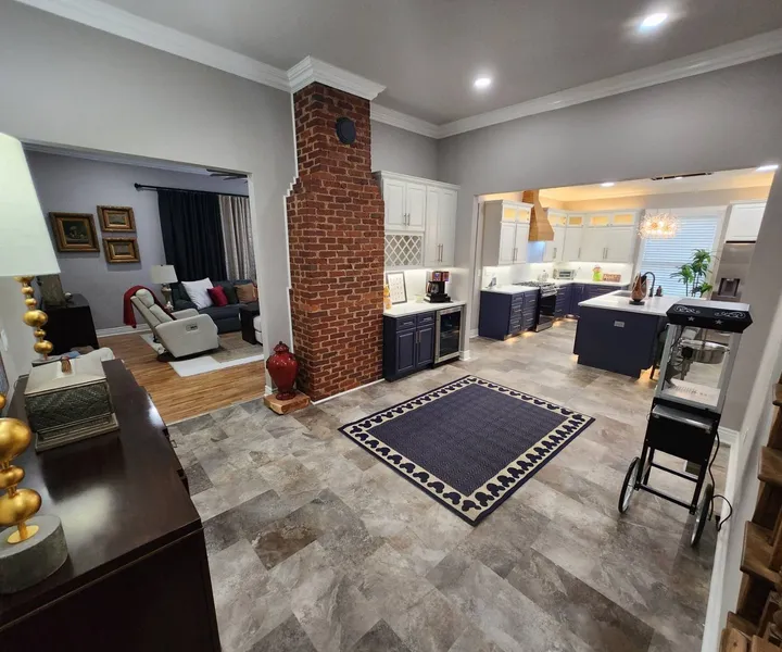 Historic charm meets modern luxury! Turnkey complete with furniture and move in ready! This home was originally built in 1911 and was completely remodeled in 2023. No expense was spared, from suring up the foundation, installing a new roof, and all new electrical, plumbing and HVAC ducting. It was also upgraded with Smart Home features including smart outlets, lights, thermostat, doorbell and outdoor perimeter cameras all of which can be controlled from your smartphone or control center in the kitchen. The neighborhood enjoys new fiber optic internet with Gigabit speeds. The internet and cable wiring were run into a control cabinet to hide all wires and equipment. This beautiful home comes loaded with designer furnishings and has been professionally decorated with 3 bedrooms, 3 full baths. The kitchen offers a large 7' island with a custom light fixture and vent hood both made from over 100 yr old reclaimed wood saved from the remodel. The all wood cabinets with soft close doors and drawers along with a custom walk-in pantry, provide ample storage. The countertops are a beautiful quartz with matching quartz backsplash. The living room has original hardwood floors and an electric fireplace with a beautiful cedar mantle. The master bedroom was enlarged during the remodel and now includes a custom walk-in closet with built-in vanity. The spa-like master bath is a retreat with its smart heated tile flooring, dual sinks, quartz countertop and huge glass tile shower with marble inlay, rainfall and wand shower heads. The upstairs can be a separate living area with its own sitting room, bedroom and full bathroom. The outdoor space includes a two car carport with a small workshop and plenty of extra storage areas. It also has an electric car charging station which could be converted to a 50 amp plug for an RV. This unique home sits on just over a quarter acre corner lot with a screened in porch and a large fenced backyard. It is also just a short walk to the historic town square. This is a must see property, so schedule an appointment and come see it for yourself!