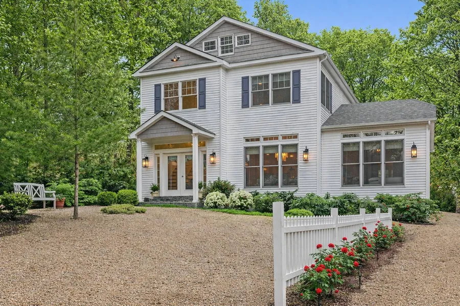 Stunning new construction tucked along the coveted fringe of East Hampton Village, offering refined living in one of the East End's most desirable locations. Bathed in natural light, this modern residence delivers thoughtful, convenient amenities while maintaining effortless proximity to pristine ocean beaches and the vibrant villages of East Hampton, Amagansett, and Sag Harbor. Designed for both everyday living and entertaining, the home features designer finishes and custom, one-of-a-kind statement lighting throughout, along with a highly functional layout that flows seamlessly outdoors. French doors open to a spacious patio with plenty of space for entertaining, creating a tranquil setting ideal for al fresco dining and gatherings. The beautifully appointed chef's kitchen connects effortlessly to the living room and adjacent powder room, highlighted by hand-painted bespoke accent detailing. Enjoy four generously sized bedrooms, three on the second level with a fully equipped luxurious bathroom, and a desirable primary suite on the main floor, complete with a spa-like en-suite bath featuring dual vanities and soaking tub. Upstairs, discover an oversized landing space, closets and storage, a dedicated laundry, and convenient attic access. The substantial 1,450± square foot unfinished basement, with a separate exterior glass double-door entry, offers versatility for additional living space, wellness amenities, a media room, or recreation. Additionally, the property supports the installation of a pool, and the home was awarded a HERS rating certificate, reflecting modern efficiency and thoughtful construction standards. A seamless opportunity to own a newly constructed residence ready for immediate enjoyment.