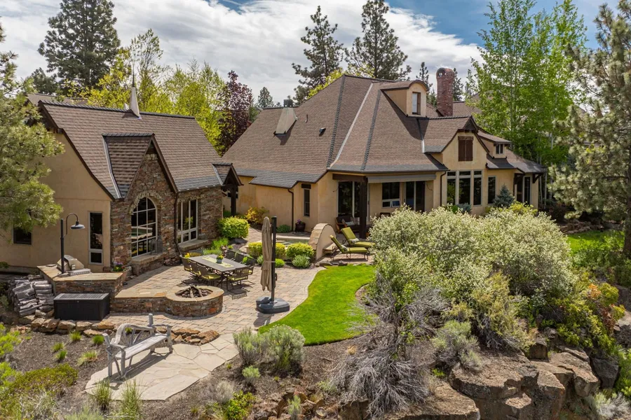 Set beautifully atop the cliffs of the Deschutes River, this multi-generational trio of homes has a total of 4702 sq feet of living space and rests on a beautifully manicured double lot. Enjoy 180-degree bird's-eye views of the Cascades, the striking tree-lined gorge below and the winding river that meanders through it all. The primary home is a main hub, with three bedrooms, a chef's kitchen, an additional den (or 4th bedroom), office and a game room/theater space that invites gathering. The second home is an adjacent one-bedroom, one-bath single-level 'Casita' with a kitchenette and access to the custom outdoor kitchen. The third structure is a two-story one-bedroom, one-bath 'Rimessa' with a charming turret and built-in wine room. Offering enduring finishes, state-of-the-art mechanicals, dreamy custom landscaping and breathtaking sunsets, this is a truly special opportunity.