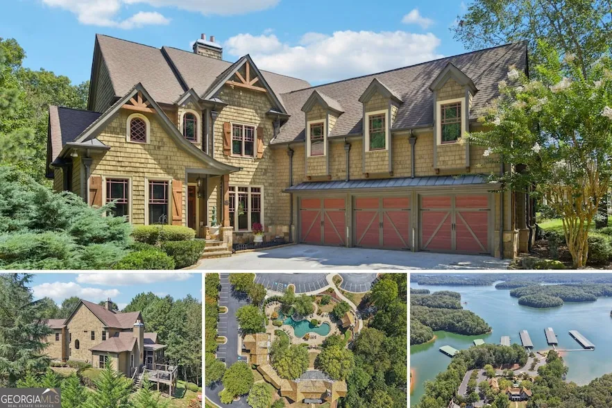 Live the Lake Lanier lifestyle in gated Marina Bay. (Premium Oversized Boat Slip Included). Where tree-lined streets, a private deep-water marina, and a resort-style clubhouse set the tone for everyday living. This custom 5-bedroom, 4 full/2 half bath residence (5,856 sq ft) was crafted to gather and impress: a dramatic two-story great room with beamed ceiling, stone-and-copper fireplace, and artisan stained-glass details flows naturally to a French-country kitchen with an oversized island, farmhouse sink, built-in refrigerator, five-burner cooktop, and custom cabinetry. The keeping room-complete with fireplace and wood ceiling-creates an intimate spot for morning coffee or game-day nights. Primary suite on main features shiplap accents, a deep tray ceiling, and a spa bath. Upstairs offers generous secondary bedrooms and flex spaces; the finished terrace level extends your living and entertaining with a large media/game room, guest suite, full bath, workshop, and abundant storage. Relax on the screened porch overlooking a private ~1.06-acre lot-ideal for a fire pit, play area, or garden. Three-car garage, hardwoods, zoned HVAC, built-in vacuum system and thoughtful millwork throughout. Marina Bay's amenities are best-in-class on the north end of the lake: a 14,000-sf New England-style clubhouse with fitness and gathering spaces, resort pool and pavilion, tennis village, walking paths, parks/playground, and a private 280-slip marina (boat slip included in the sale). All minutes to Gainesville, Dawsonville, GA-400, and North Georgia wineries and trails. Zoned for Sardis Elementary and Chestatee schools. Come home to comfort, craft, and community-your lake life begins here. Disclaimer: All information deemed reliable but not guaranteed and should be independently verified. Photos & lot lines may be virtually staged to assist buyers in visualizing the property's potential. Contact the listing agent for more information or to schedule a private showing.