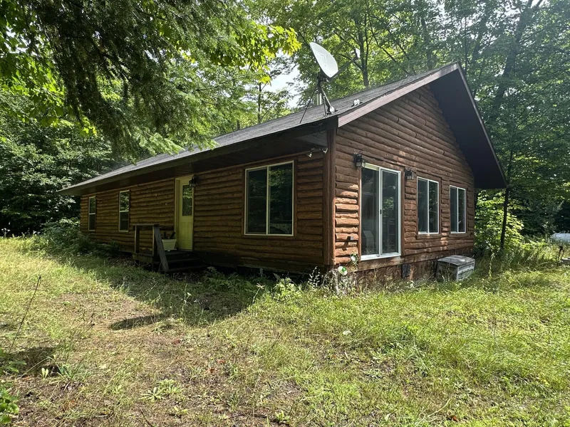 Discover peaceful country living on 10 wooded acres with this log-sided ranch home. Features include 3 bedrooms, 2 bathrooms, and a spacious primary suite with a walk-in closet and private bath. A two-car detached garage offers ample storage, and a new furnace installed in November 2025 provides added peace of mind. This property is suitable as a year-round residence, vacation getaway, or investment opportunity. The home has a bright, open layout and is ready for finishing touches. A recent pipe burst was fully repaired; however, the flooring has been removed throughout, and the kitchen requires a new sink cabinet. Seller is offering concessions toward the replacement of flooring and cabinetry.