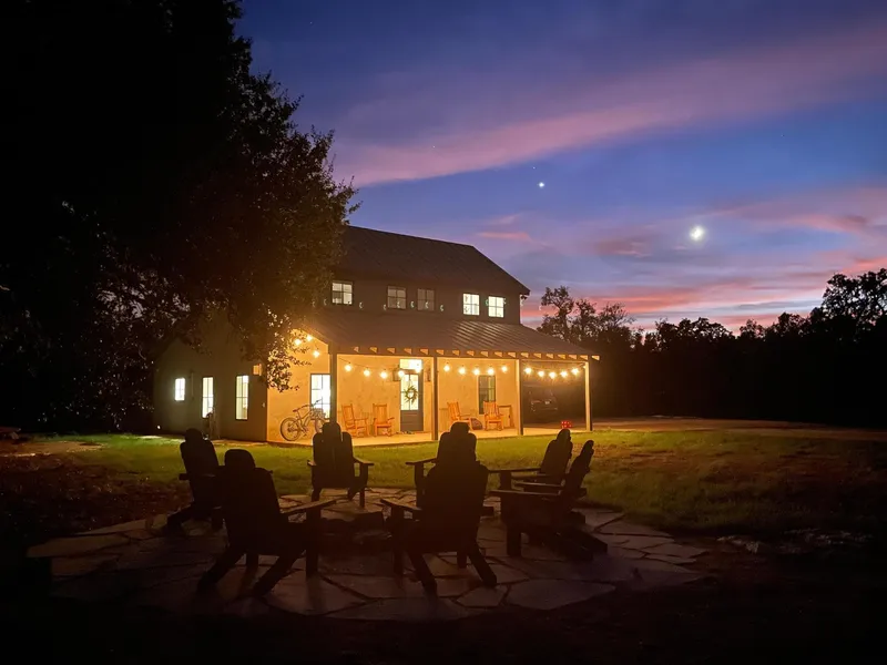 The home, built just two years ago by Timber & Stone Custom Builders out of Fredericksburg, is a 3-bedroom, 2.5-bath residence. It showcases white oak flooring and an open floor plan, gas lighting, fireplace, and master suite conveniently located downstairs. The upstairs area includes two bedrooms sharing a Jack-and-Jill bathroom, as well as a game room. One of our favorite spots on the property is around the fire pit, where you can enjoy the breathtaking views of the fields and mountain sides. You truly have to experience this place during wildflower seasonit's absolutely incredible!