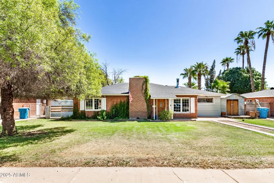 Full of charm, character, and craftmanship. This 1951 brick beauty is ready to welcome you home! This East/West-facing property features mature landscaping and a storage shed. Find an inviting living room highlighted by a cozy Mid Century Malm fireplace, seamlessly flowing into the dining area. Formal family room with French doors provides the perfect space for entertaining. In the kitchen, you will have plenty of cabinets, stainless steel appliances, tile backsplash, pendant lighting, and tile & quartz counters. Spacious main bedroom impresses with its own sitting room, wood-burning fireplace, and a private bathroom with a shower/tub combo. Generous sized backyard includes a covered patio, 30ftcovered RV parking, and shade trees that create a relaxing atmosphere. Hurry! This won't last