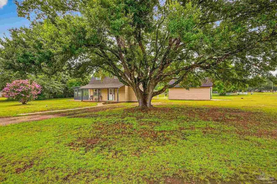 Absolutely Country Living with City Convenience – No HOA & Move-In Ready! Welcome to this ONE-OF-A-KIND GEM offering peaceful country living just minutes from all the essentials! Nestled on a SPACIOUS corner lot just shy of an acre, this beautifully updated property is ideal for anyone needing room for **work vehicles, equipment, an RV, or boat—**with no HOA restrictions to limit your possibilities. Step inside and you'll find a completely renovated home that's truly turn-key. Recently upgrades include a new roof, HVAC, water heater, vinyl flooring, windows, lighting, fans, and garage door—everything has been done for you! The detached 24x24 garage/workshop is a dream come true, featuring power, water, workbenches, pull-down attic stairs for extra storage, and an attached carport—perfect for hobbyists, mechanics, or small business owners. Inside the home, enjoy a warm welcome from the covered front porch, leading into a spacious open-concept living area with a cozy gas fireplace and stylish tile flooring. The kitchen and dining area flow beautifully with solid surface countertops, matching backsplash, and stainless steel appliances—perfect for entertaining or everyday living. The first-floor bedroom is spacious and conveniently located near a full bath with walk-in shower, laundry area, and bonus room ideal for an office, home gym, or creative space. Beautiful Sunroom with gas heating and window air unit to enjoy nature at its best. Upstairs, relax in the large master suite featuring a luxurious en-suite bath with shower & tub combo, an oversized walk-in closet, and an additional guest bedroom. Outside, the fenced backyard is dotted with fruit trees, pecan trees, and vibrant Crepe Myrtles—a perfect space for gardening, pets, or outdoor entertainment. Survey and supporting documents available. Don't miss this rare opportunity to own your own space with no limitations—schedule your private showing today!