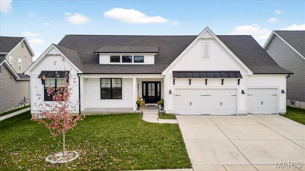 Welcome to this beautifully designed 3-bedroom, 2.5-bath with 3 car garage ranch located in the highly sought-after Villages at Sandfort Farm community. The open floor plan offers convenient access to the kitchen and dining area. The exterior showcases excellent curb appeal with stone and horizontal/board and batten white siding, Craftsman-style details and carriage-style garage doors. Inside, you’ll find 9-foot ceilings on the main level, Engineered wood flooring, and a spacious great room with a wall of windows, a gas fireplace with stone surround. The open-concept kitchen features a large center island with seating, Granite countertops, gas cooktop with microwave hood, crown moulding cabinets, pantry. The primary suite offers a large room with 2 big windows, and a walk-in closet with built-in organizers and attached restroom with dual vanity. Additional 2 bedrooms come with walk-in closets. Entire house has recess lighting, multiple ceiling fans, vintage plus series garage doors, unfinished basement with rough in for future addition of bathroom and sump pump.