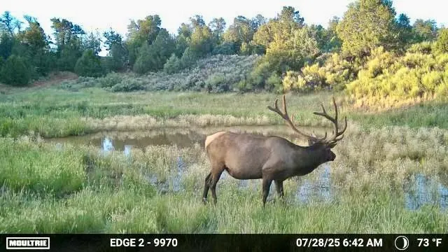 Owl Rock Ranch has historically received 1 mature bull elk tag and 1 antlerless cow elk as a base, with incentive elk tags from 1-3 annually and 1-2 landowner mule deer buck tags annually. (Always check the latest regulations.) A hidden, timbered sanctuary bordering the Jicarilla Reservation, complete with an exceptional waterhole that draws consistent wildlife activity, is one of Owl Rock’s best features. With a timely close, the ranch is being conveyed with 2 cow elk tags for 2025 season, good until December 31st.