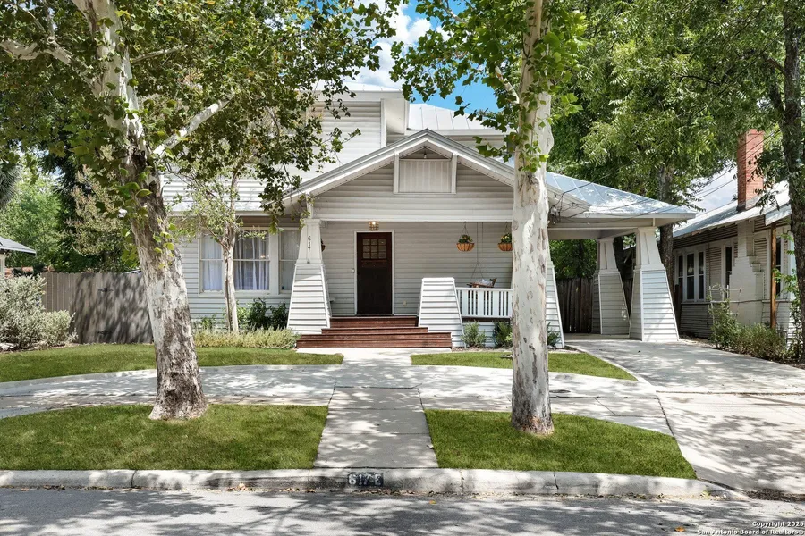 Historic Charm Meets Modern Comfort in Tobin Hill! Step into this beautifully preserved two-story home in the heart of Tobin Hill, where timeless character blends seamlessly with today's conveniences. Relaxed living & warm welcomes with a cozy front porch! Inside, you'll find 4 spacious bedrooms, 2.5 bathrooms, & multiple living areas, including a front living room with a charming fireplace framed by built-in bookcases. The home also features a light-filled den with a wall of French windows and door opening to a patio and turfed yard perfect for outdoor games & entertaining. The upstairs loft reading nook offers a quiet retreat, while the formal dining room features a large bay window with a built-in bench seat combining character with function. The home features updated bathrooms, including a spa-inspired primary suite with a free-standing tub & oversized shower. The kitchen boasts quartz countertops, and all appliances convey! Washer and dryer are located in a large utility room with abundant new cabinetry. Wood flooring throughout enhances the historic charm, complemented by modern updates like a newer metal roof, electrical & plumbing, 2 HVACs for peace of mind. Enjoy unmatched convenience with easy access to I-35, 281/I-37, Airport, Trinity University and UIW! Stroll a few blocks to the Pearl & River Walk! Investor Potential for Short Term Rentals! Own a piece of history in one of San Antonio's most vibrant neighborhoods!